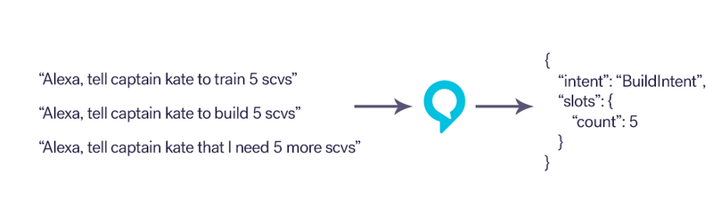 - "Frontend" responsible for initial processing of user's input and translating it into certain actions in our code. This is handled by Alexa Voice Service, but we need to provide it with interaction model and sentence samples.