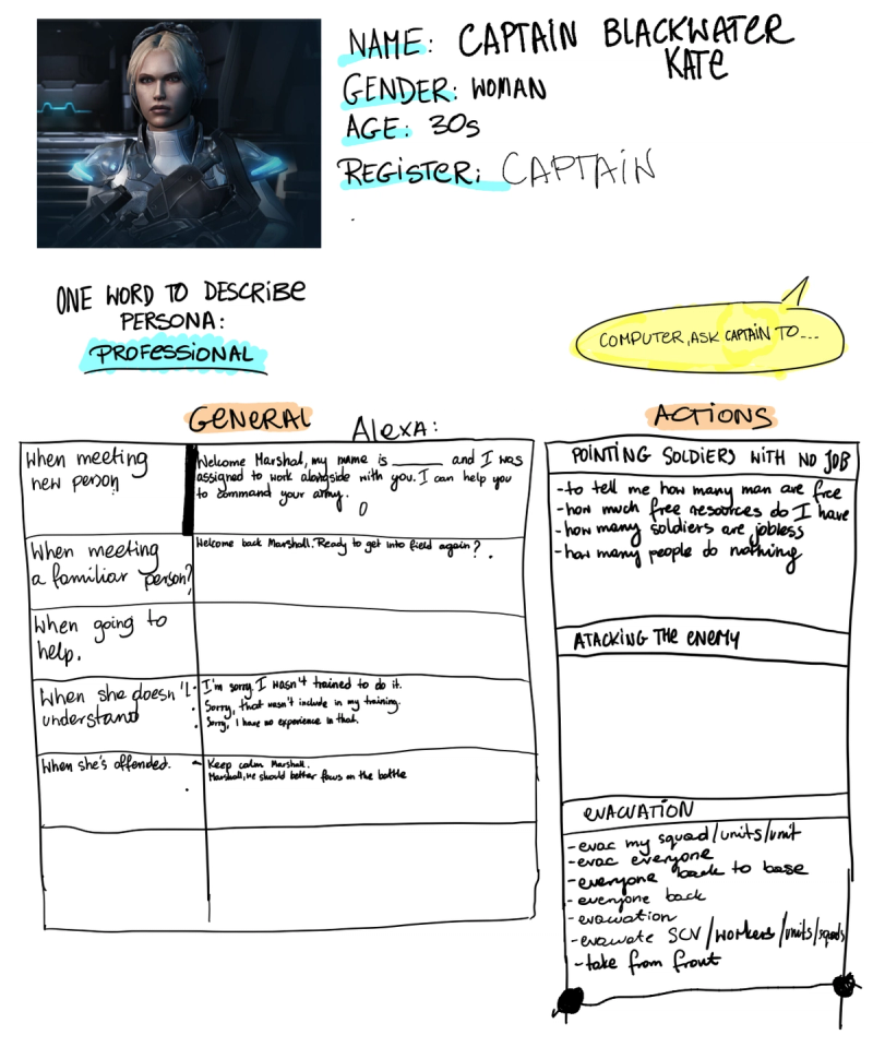 To better fit our Voice User Interface into StarCraft, we designed an alternative "virtual assistant" that replaces Alexa when you're controlling the game.