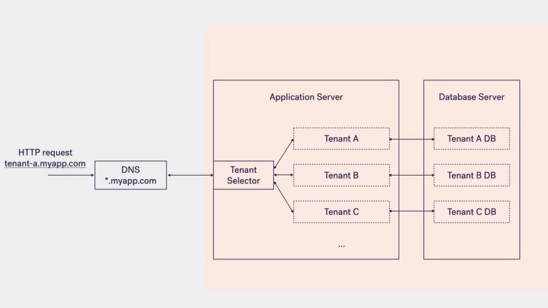 - Single database server, with separate databases for each tenant (or separate schemas in Postgres)